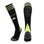 The Celtic Kids 2025/26 away jersey is inspired by classic kits from the 1990s, offering a stylish take on classics. Horizontal neon green pinstripes pop against a black background, creating a modern and vibrant look. The embroidered badge and athletic logo are also in neon green, and AEROREADY technology ensures comfort. This kids’ jersey is perfect for cheering on your little ones.