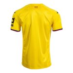 Getafe CF’s third short-sleeved jersey for the 2025-26 season. Men’s. The club’s new jersey features a vibrant yellow color throughout, symbolizing energy and determination. This year, the jersey design incorporates a unique detail: two vertical stripes on the sides represent the colors of the team’s other two jerseys: blue and red. Thus, all three jerseys incorporate the colors of the other two jerseys, creating a visual identity and a sense of unity across all versions.