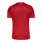 FC KÖln’s 25/26 away jersey combines the club’s iconic red with modern design details. The jersey is dark red on the upper body, gradually fading to lighter on the lower body, with tonal stripes on the front and back. The jersey is made of a new jacquard fabric made of 100% recycled polyester with a matte/glossy effect, and is decorated with iconic details such as embroidered logos, contrasting ribbed collars, and printed neckbands and co-branded hem prints, perfectly combining club honors with excellent performance.